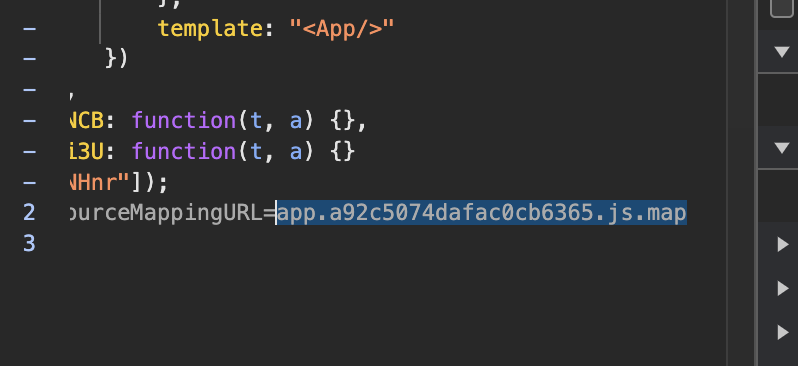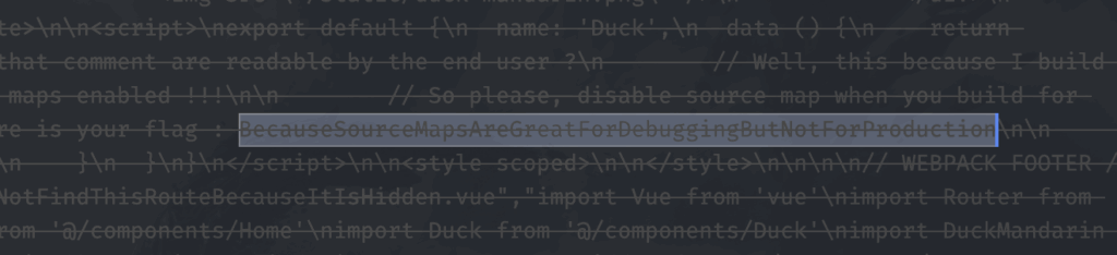 Il est pour autant loin du code original car a été optimisé et abstrait pour justement éviter que tout le monde ait accès au code original (et éviter les failles). La seule possibilité que nous ayons est un fichier que l’on appelle un « map ». C’est un fichier qui explique comment nous sommes passé du code original au code compilé. On la trouve dans l’un des fichiers js de base :