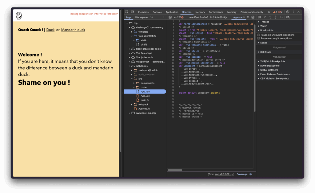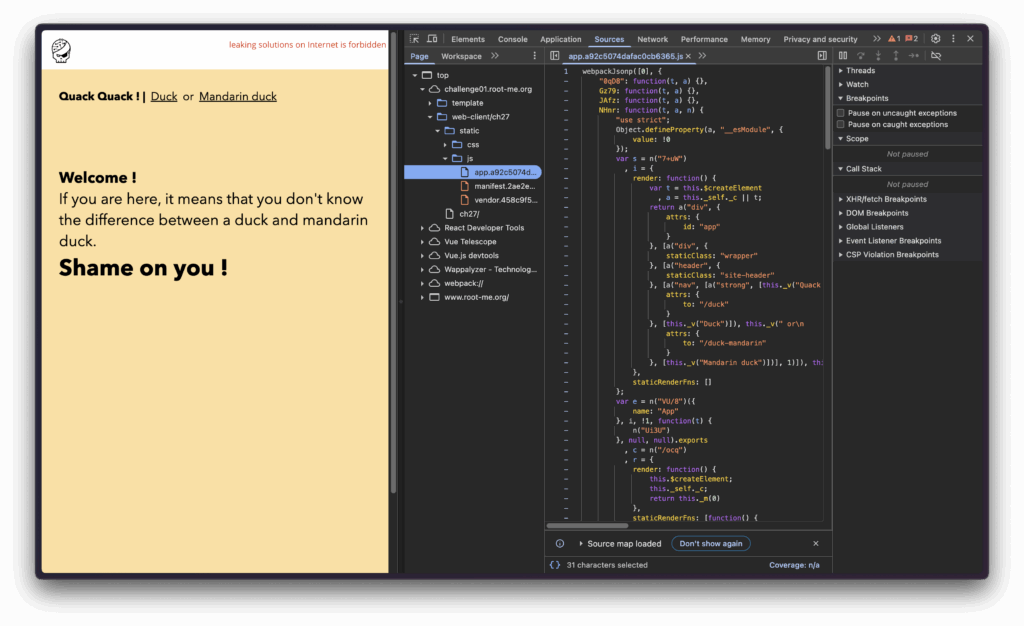 | Méthode | Trouver le source mapping de webpack pour y trouver le code |